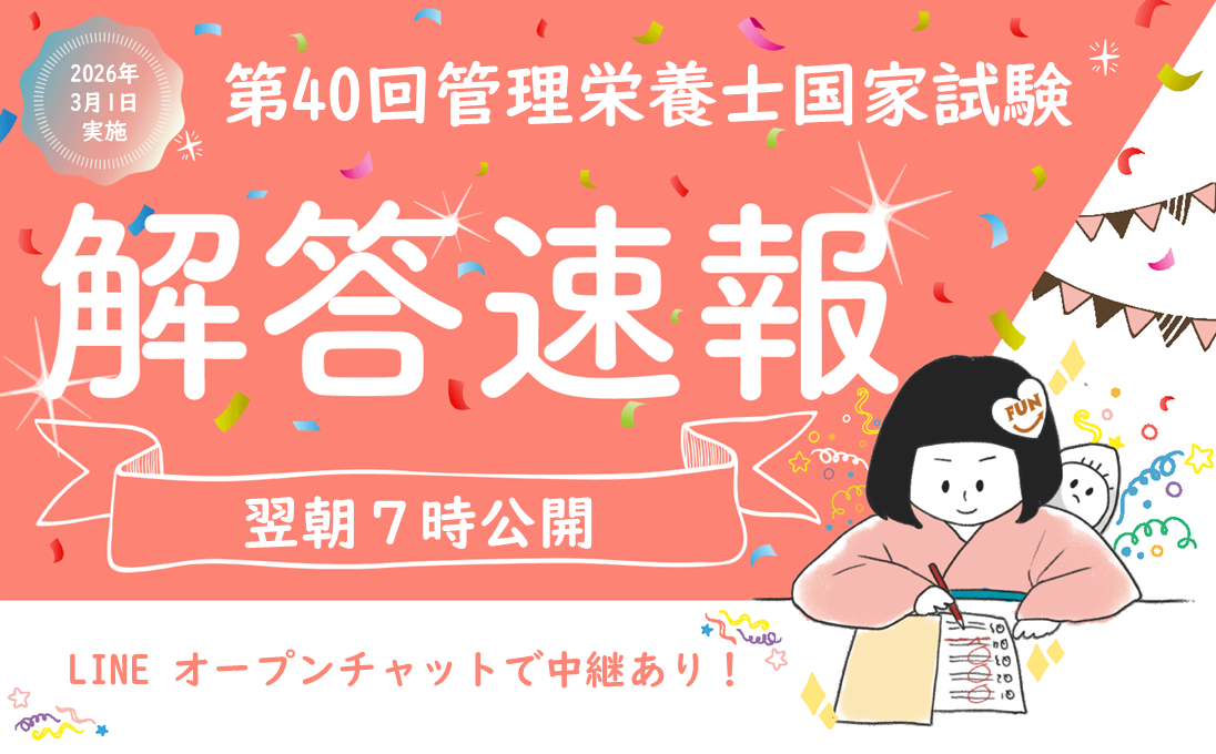[中継あり!]第40回管理栄養士国家試験解答速報は翌朝7時に公開します!