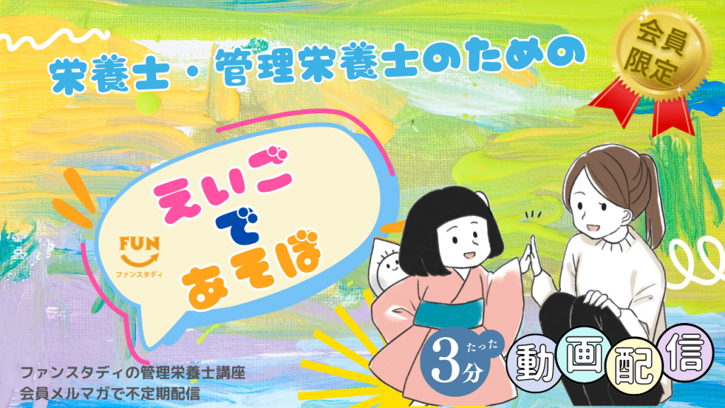 栄養士(受験生)も、管理栄養士も、自己流での英語学習はしなくてもOKという状態にするために、メルマガで学ぼう!の一環でお届けします。さらに、3分動画の配信も始めます!お楽しみに!