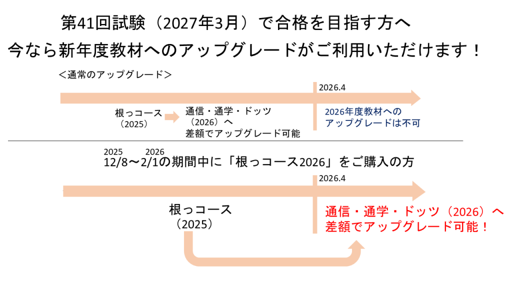 2026年版の受験教材にアップグレード可能というキャンペーンです!