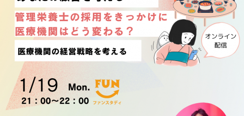 \あなたの顧客を考える/管理栄養士の採用をきっかけに医療機関はどう変わる?医療機関の経営戦略を考える ファンスタディで管理栄養士に合格された、キャロライン稀勢の里さんからのご縁でこの機会を作ることができました。土浦ベリル … 続きを読む \あなたの顧客を考える/ 管理栄養士の採用をきっかけに医療機関はどう変わる? 医療機関の経営戦略を考える [2026年1月19日(月)]