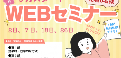 管理栄養士になりたい受験生(栄養士の方)管理栄養士合格後の学びに悩む方必見! 正しい勉強法と計画の立て方を学びませんか?ご参加いただいた方の特典として、ファンスタディのコース教材の3日間の無料体験をプレゼントしています! … 続きを読む 5月スタートWEBセミナー